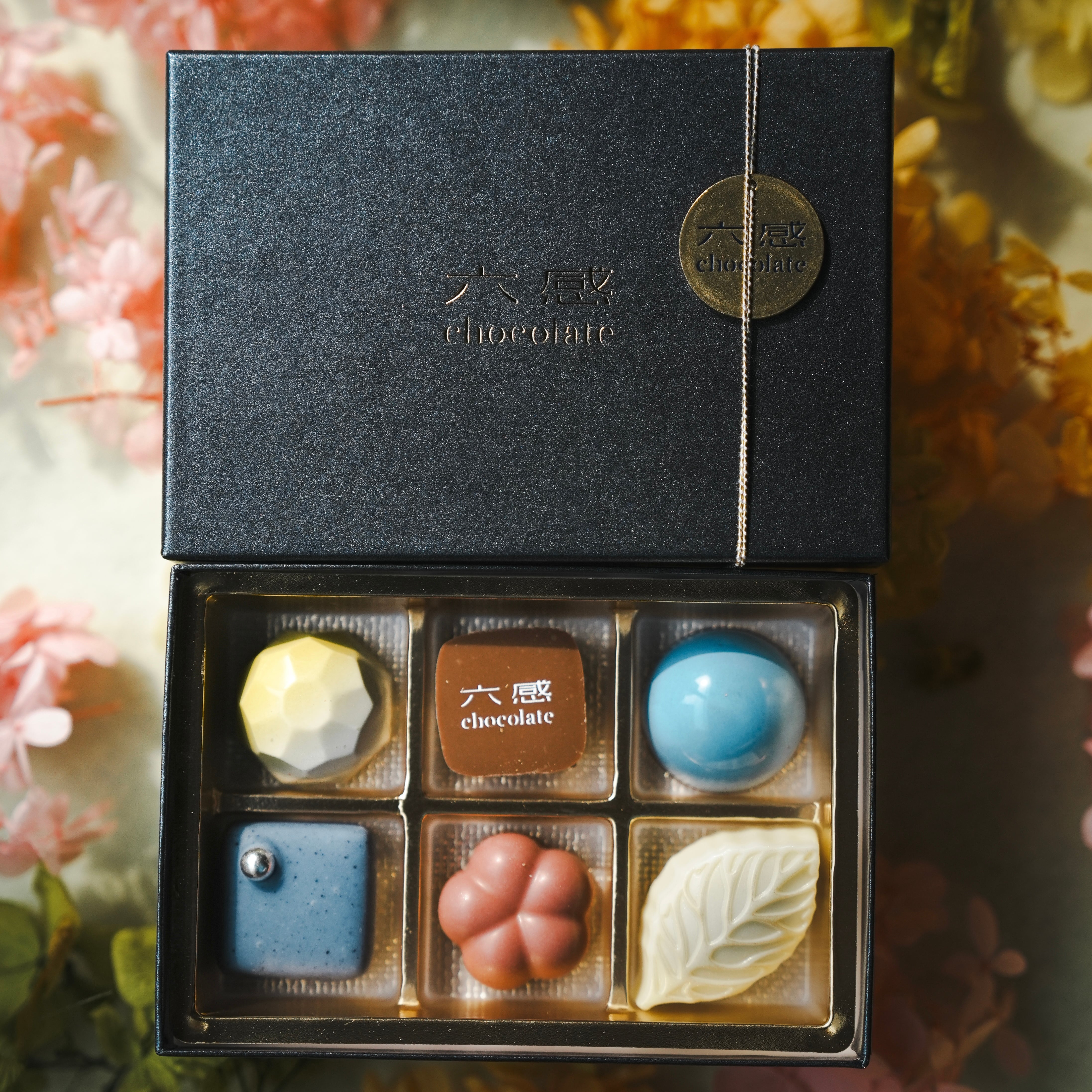 ・青鈍(アールグレイ香るガナッシュとバタフライピーで色付けたホワイトチョコの組合わせ)