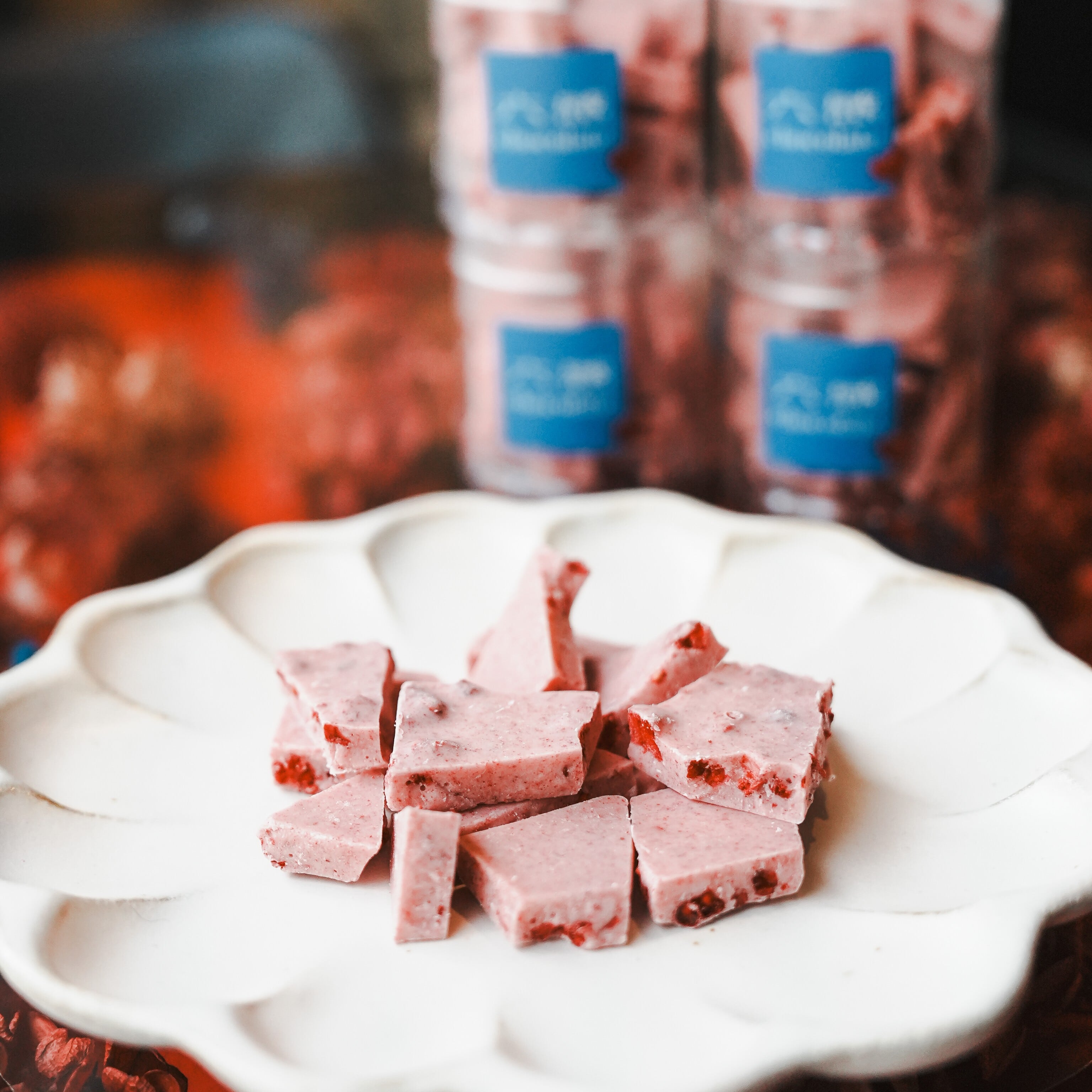 特別な瞬間を引き立てる、魅力的なクラッシュチョコレート(ラズベリー)です!この商品は、ラズベリーをたっぷり使用した割りチョコで、口に入れるとフルーティな酸味が広がり、リッチなチョコレートとの絶妙なバランスが楽しめます。